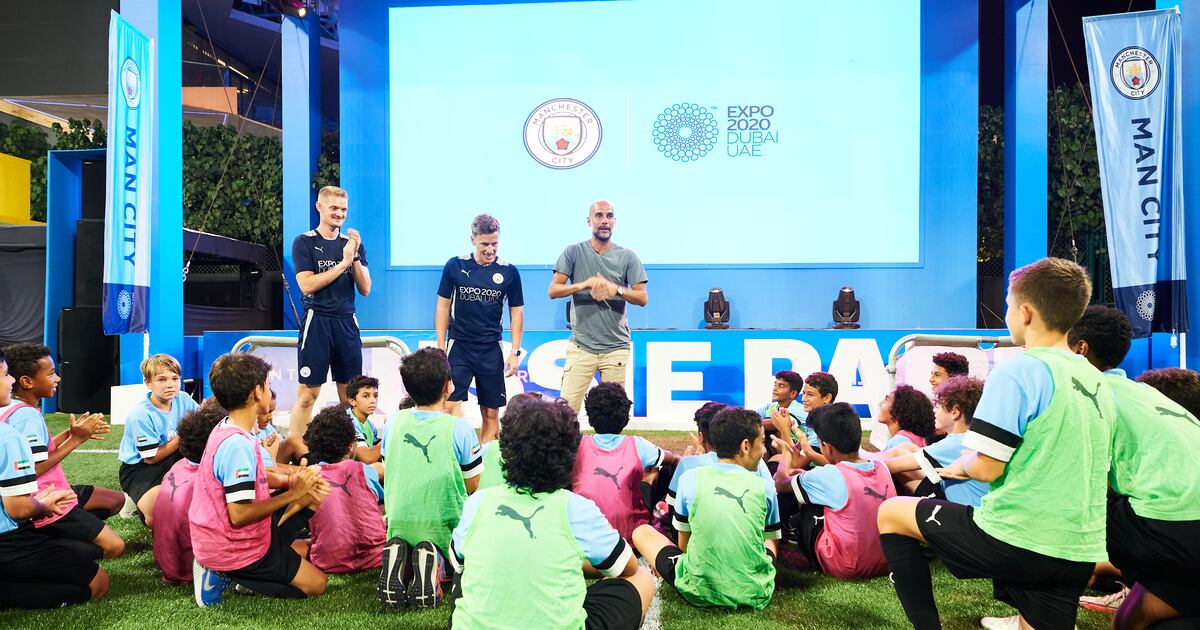 Manchester City manager Pep Guardiola surprises young footballers during Expo 2020 visit The National