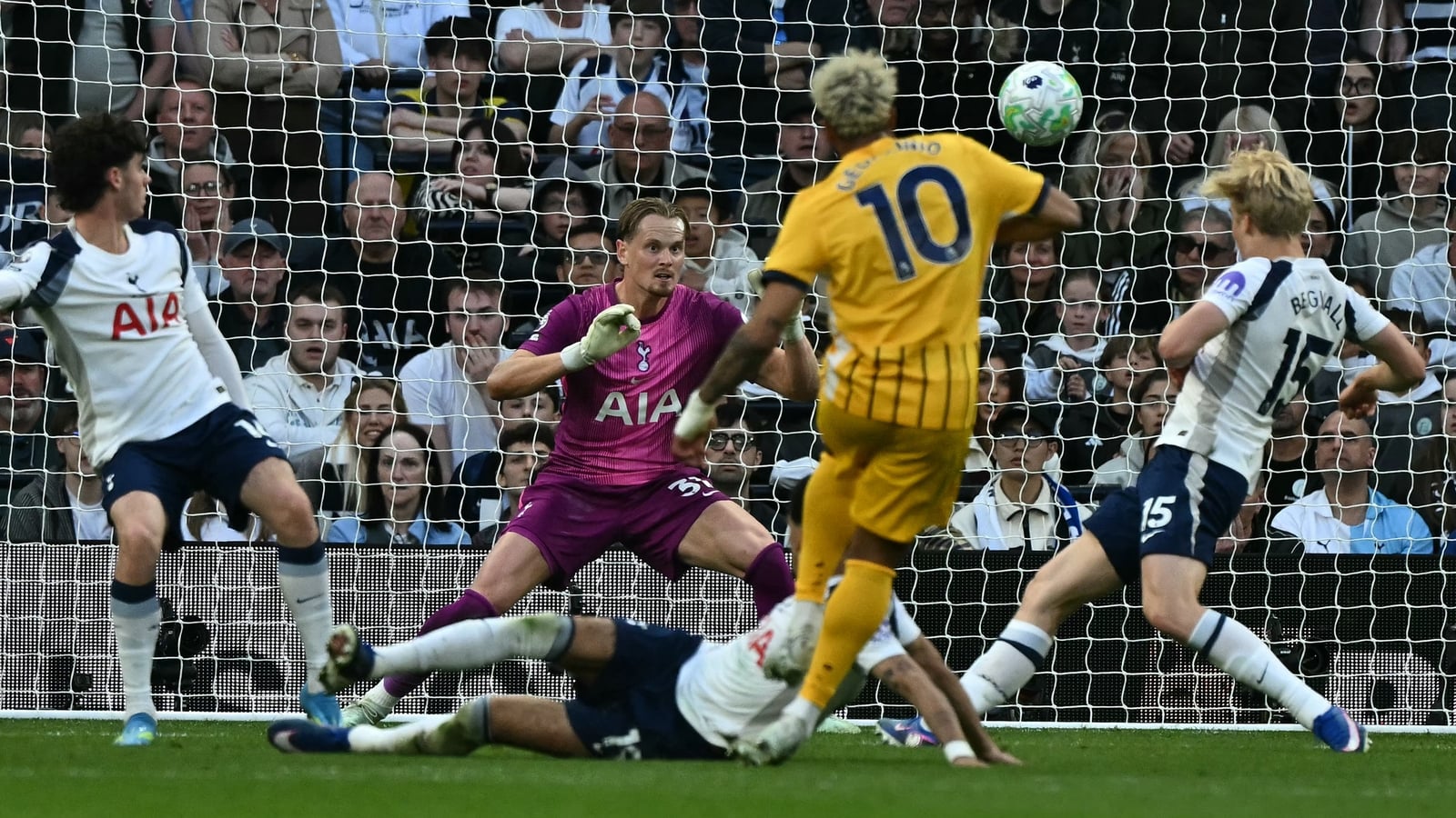 Kaoru Mitoma's exquisite volley brings Brighton level in their Premier League clash with Tottenham.